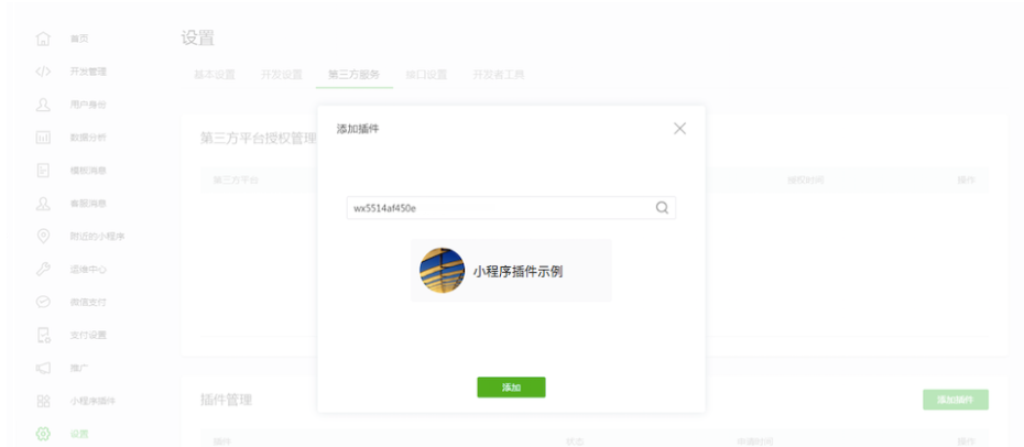 在小程序管理后臺(tái)添加插件