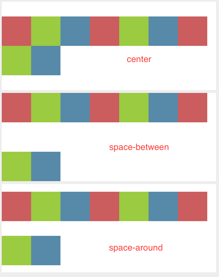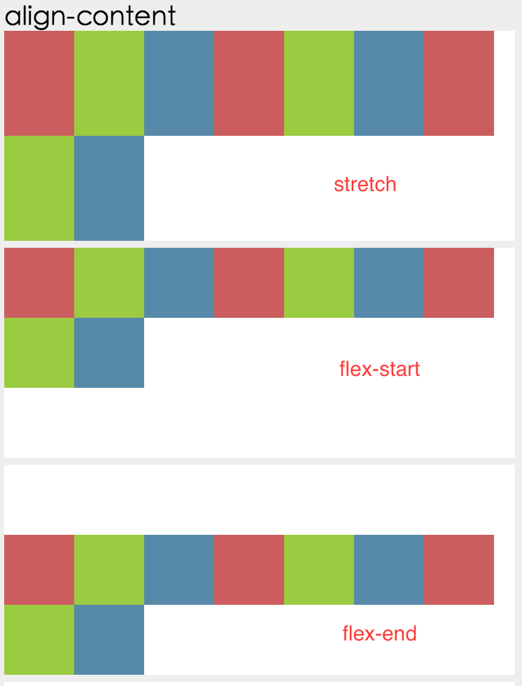 定義了多根主軸的對齊方式,如果項目只有一根主軸則不起作用,多根主軸一般會在主軸上折行時出現(xiàn):
